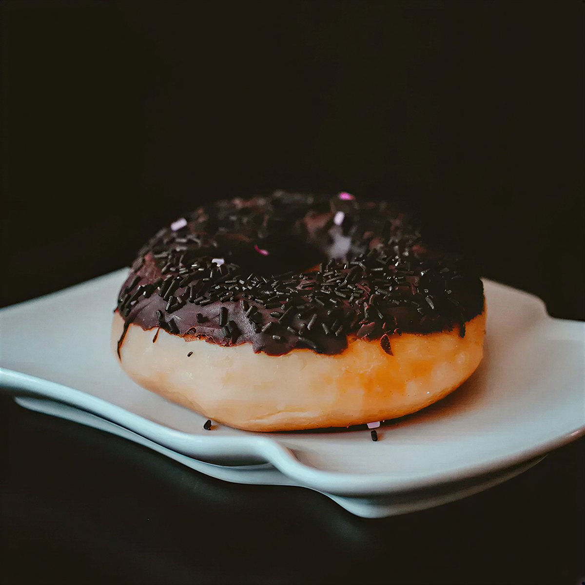 Un donut garni d’une crème au chocolat noir nappé de chocolat fondant pour un gout riche et authentique.